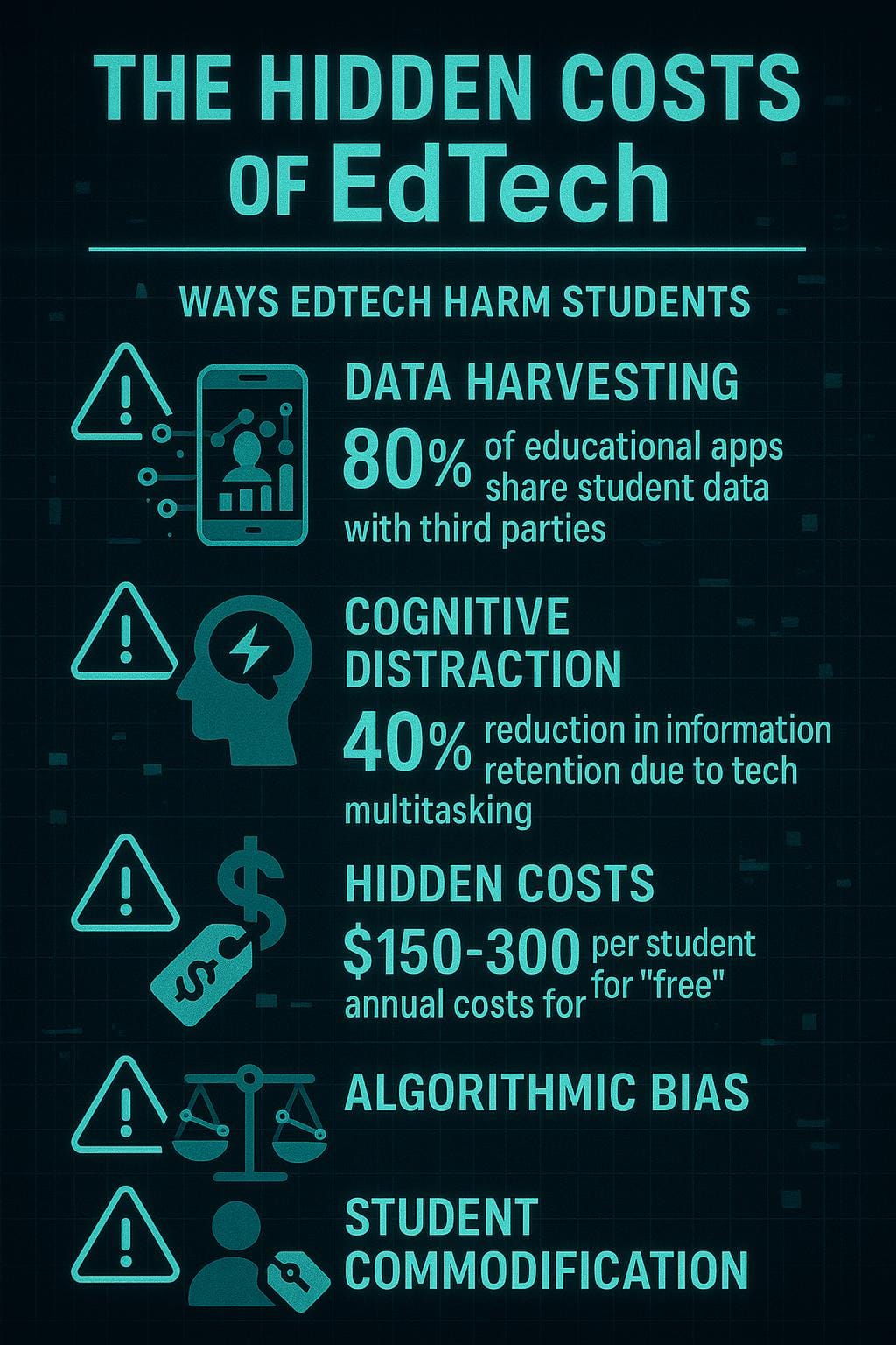 The hard truth is that many EdTech tools aren’t designed with student welfare as their primary concern. They’re designed to capture attention, harvest data, and create dependencies that serve corporate interests rather than educational outcomes.