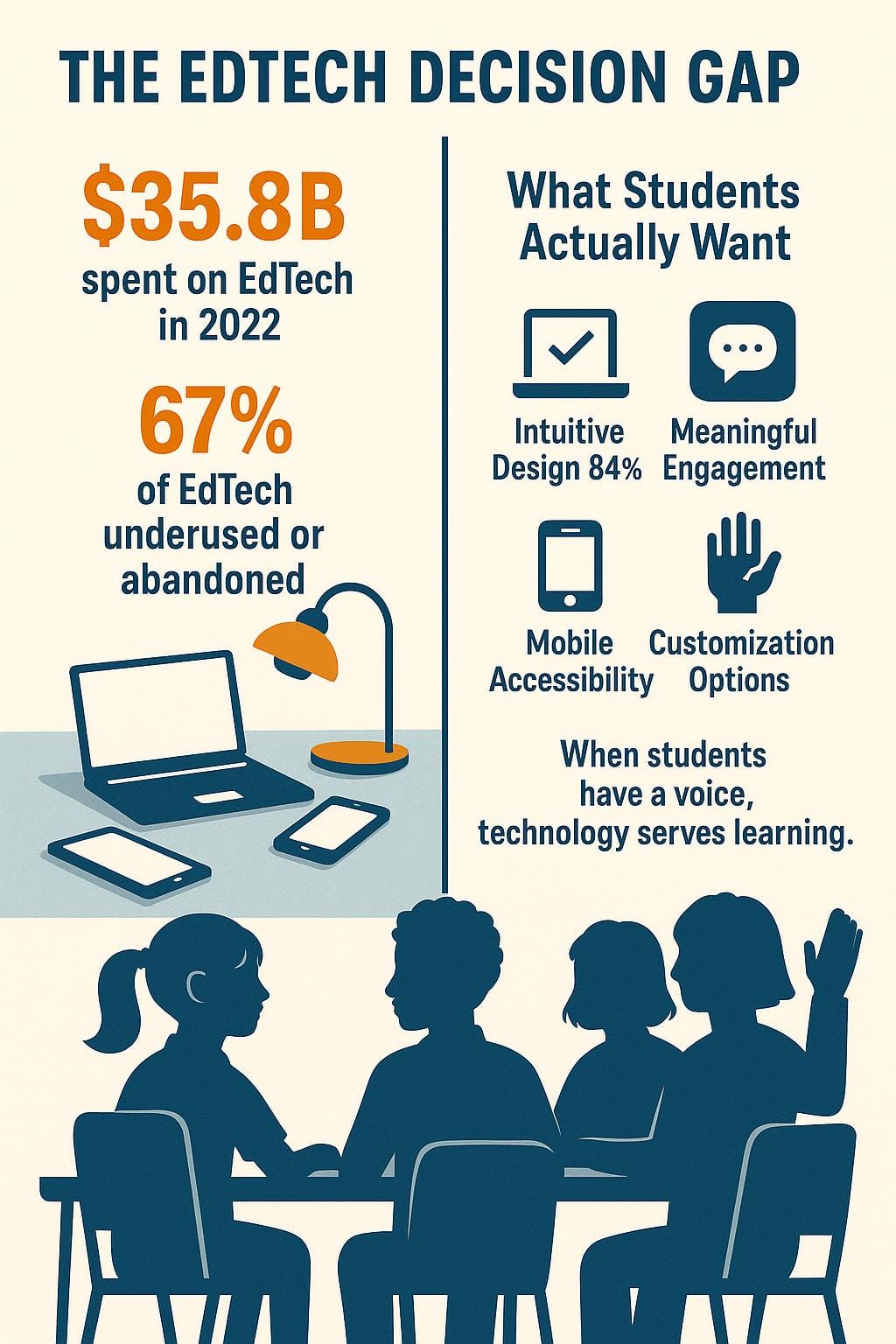 - Schools waste millions on abandoned EdTech when they fail to include student perspectives in purchasing decisions.